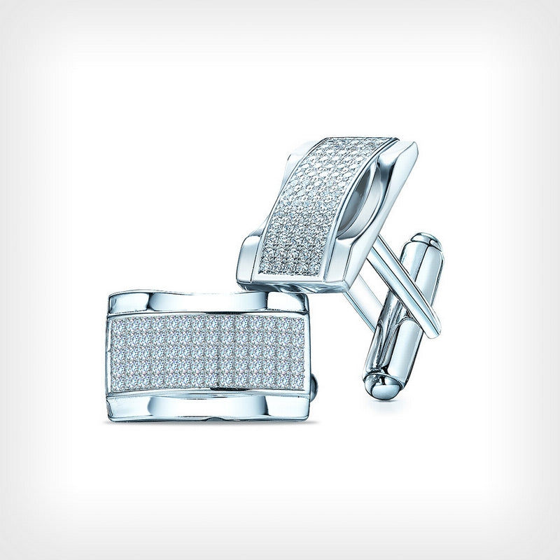 Rectangular cufflink, Rose gold plated edges and stone set centre