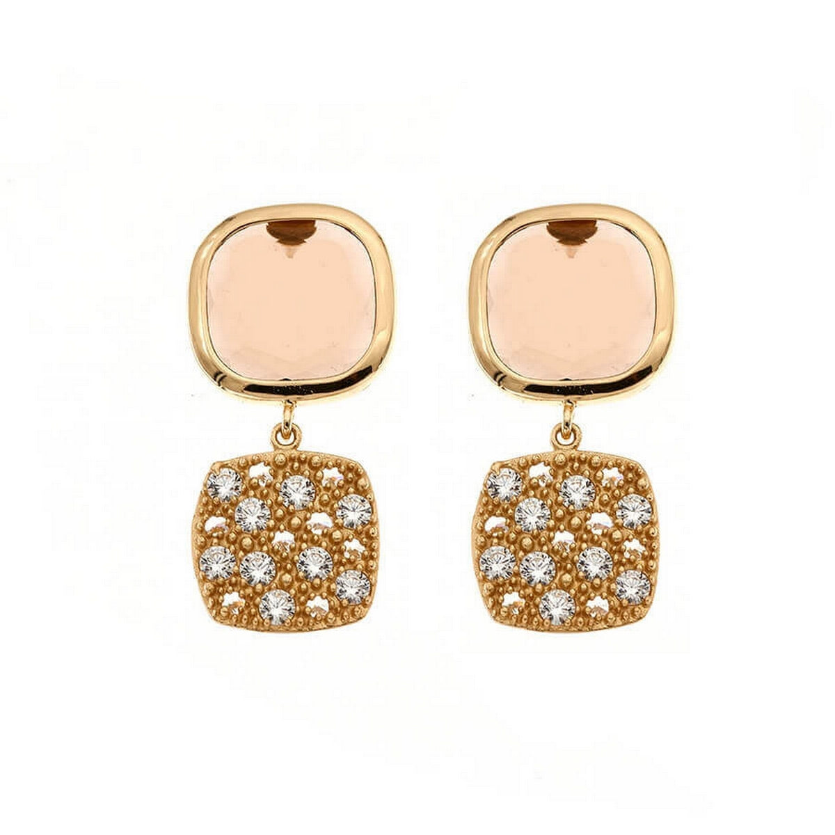 Aquaforte Caramelle Reverse earrings with cognac glass paste and reverse pavé