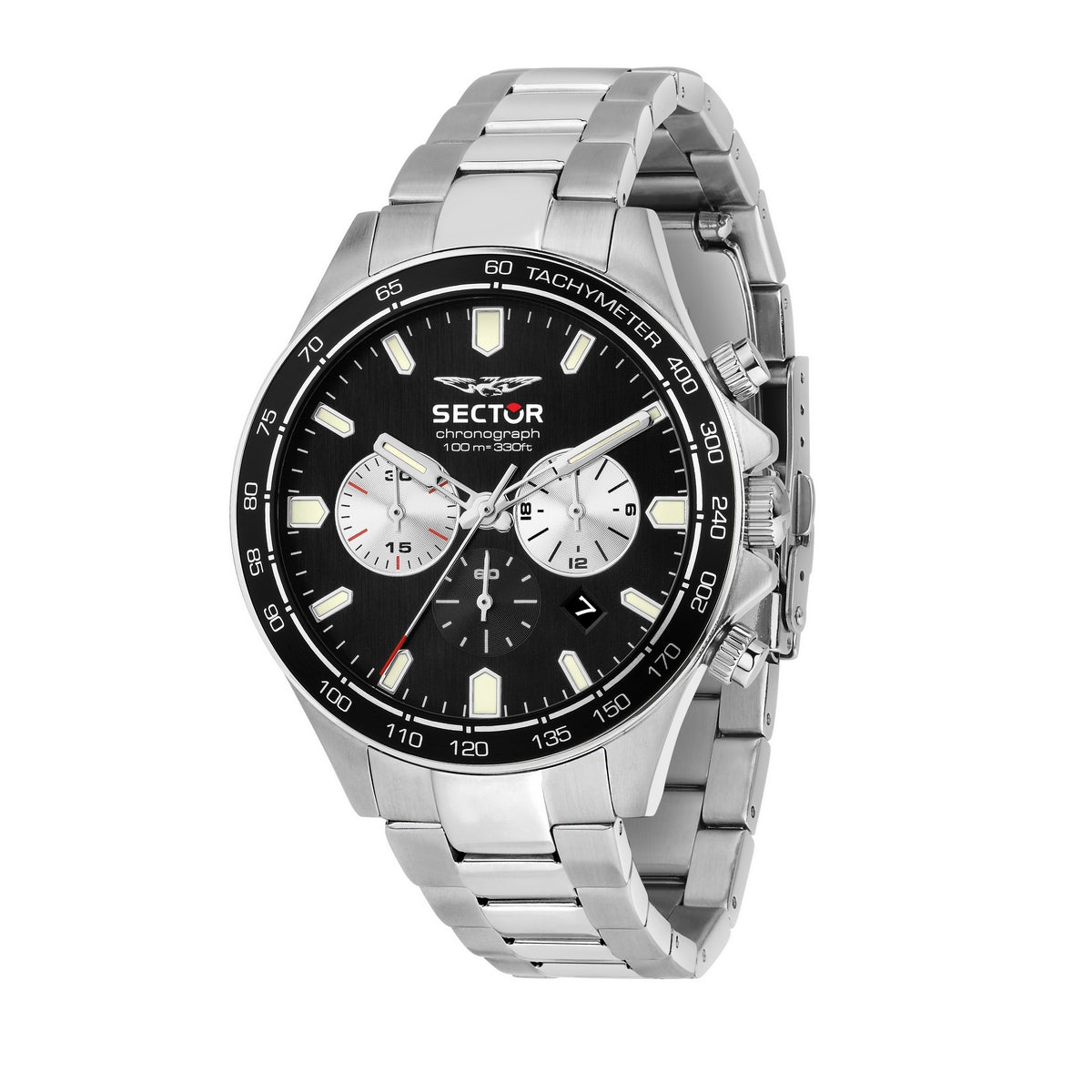 sector 230 43mm chr black dial stainless steel bracelet