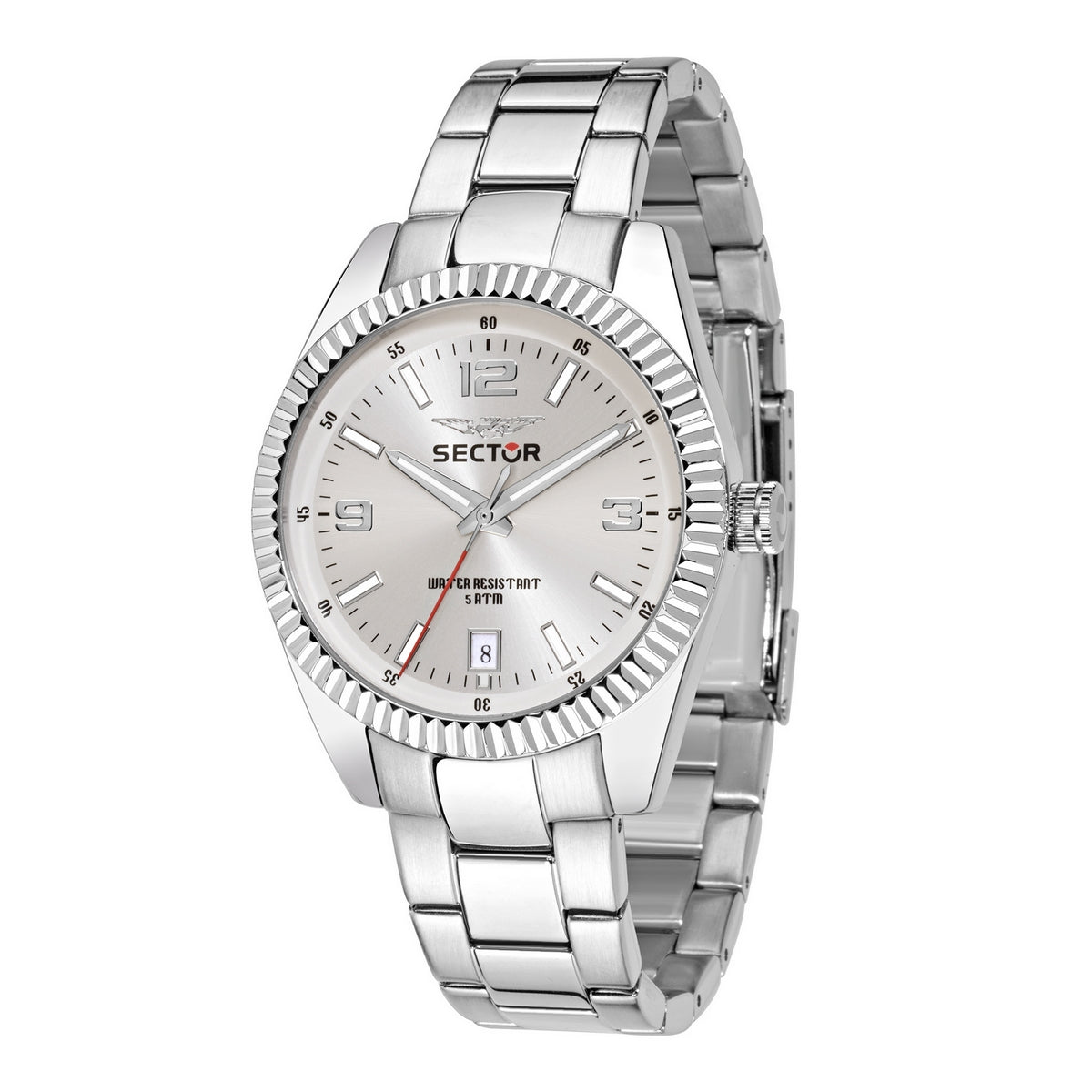 sector 240 41mm 3 hand silver dial bracelet case watch
