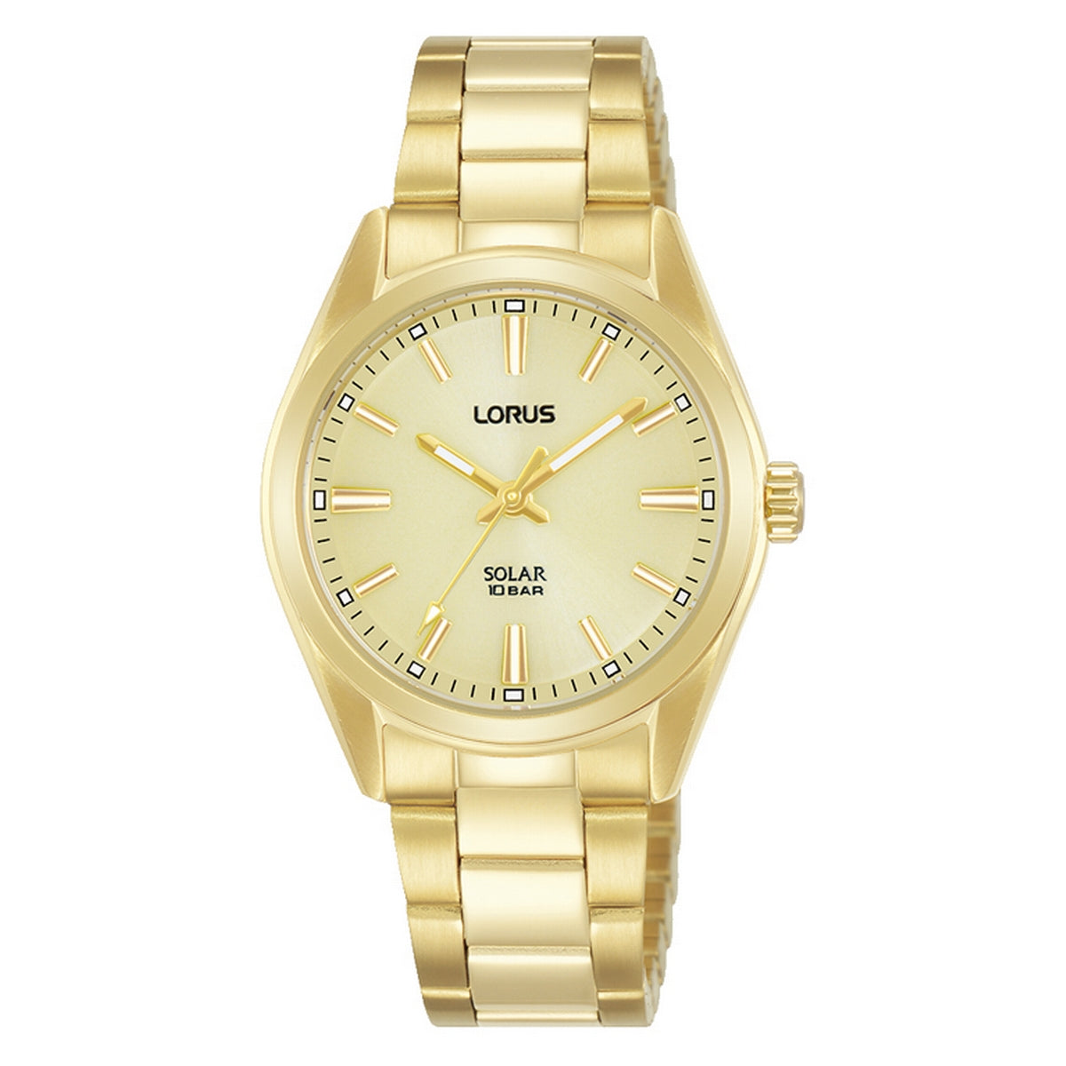 lorus solar ladies gold plated stainless steel champagne dial bracelet watch