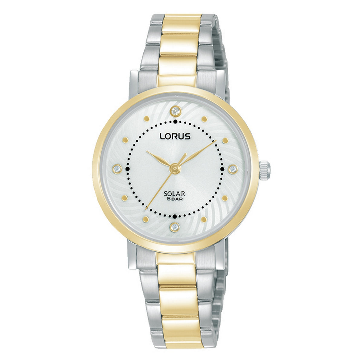 LORUS SOLAR LADIES TWO TONE SILVER DIAL BRACELET WATCH