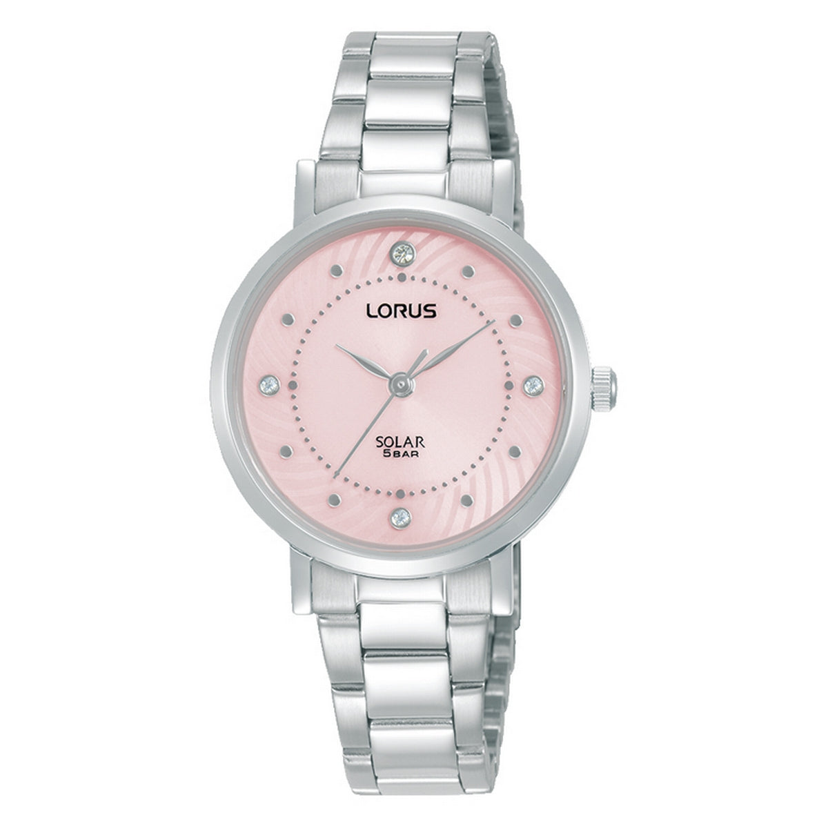 lorus solar ladies stainless steel pink dial bracelet watch