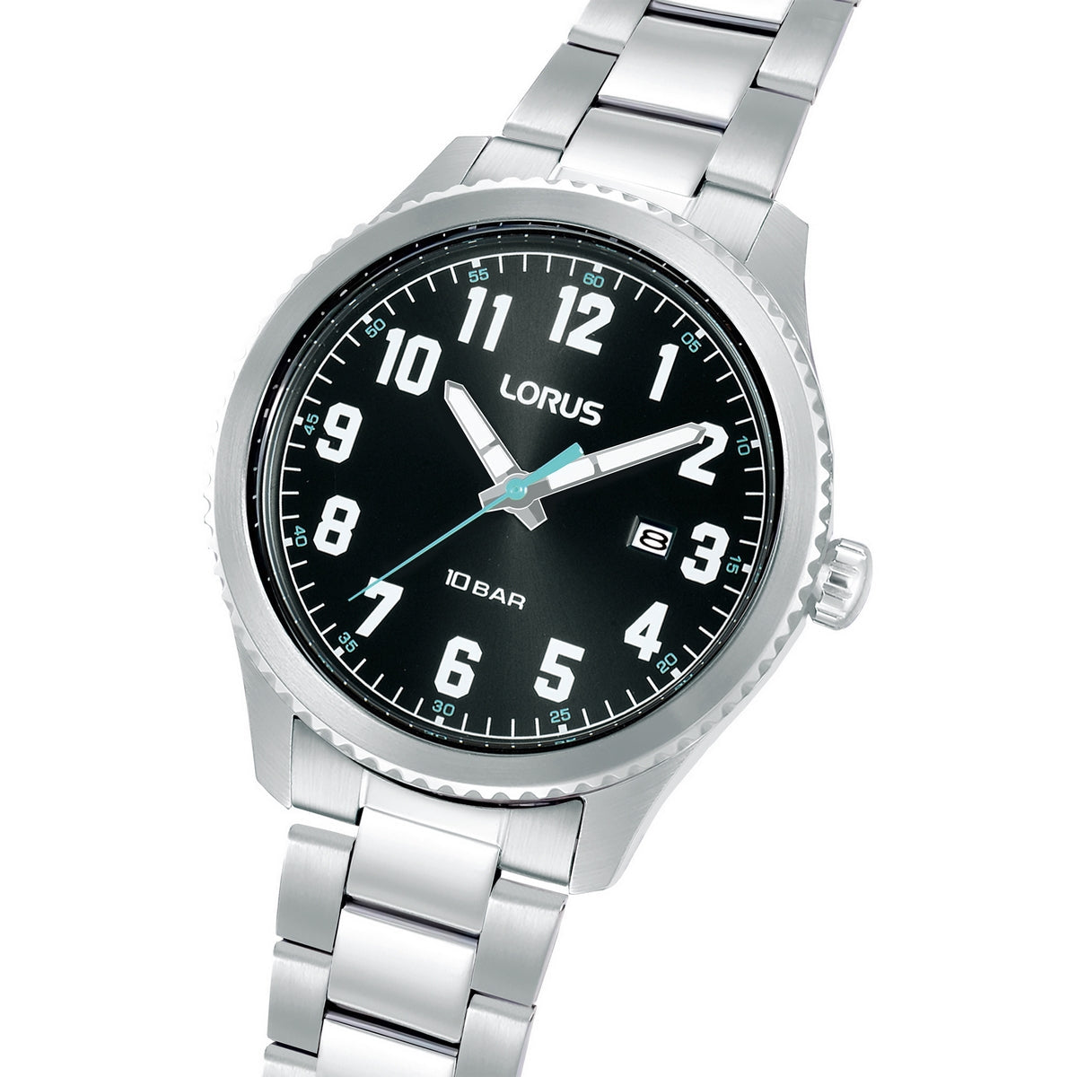 LORUS QUARTZ GENTS STAINLESS STEEL BLACK DIAL BRACELET WATCH