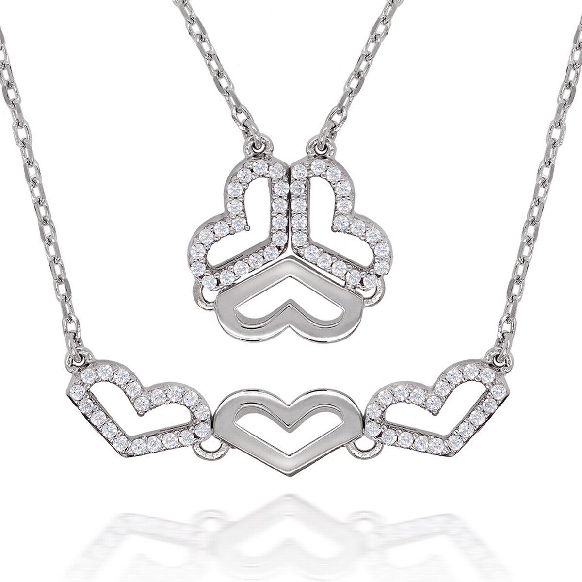 REAL EFFECT THREE HEART STONE SET PENDANT