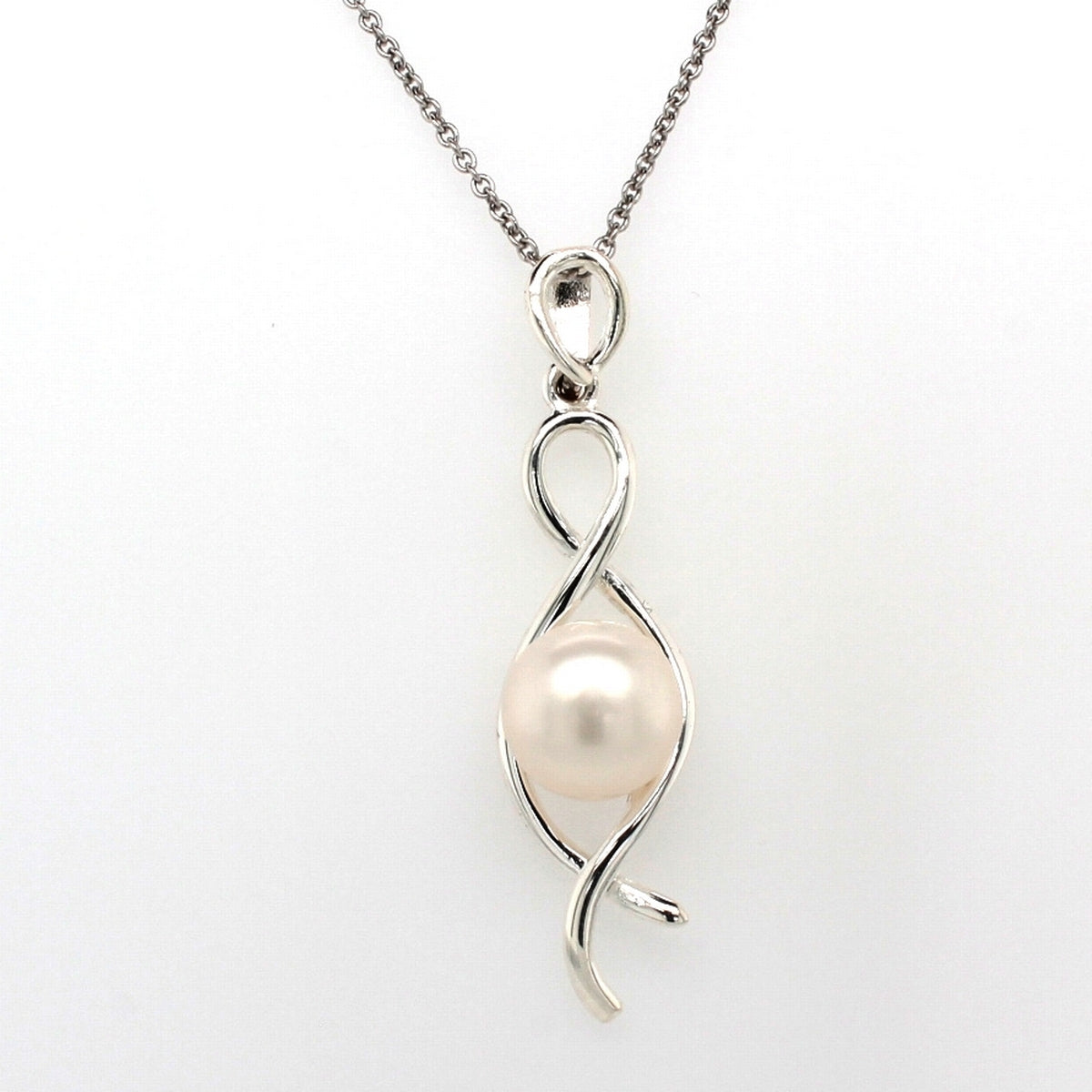 silver plain drop twist pearl pendant�9mm on 45cm chain a