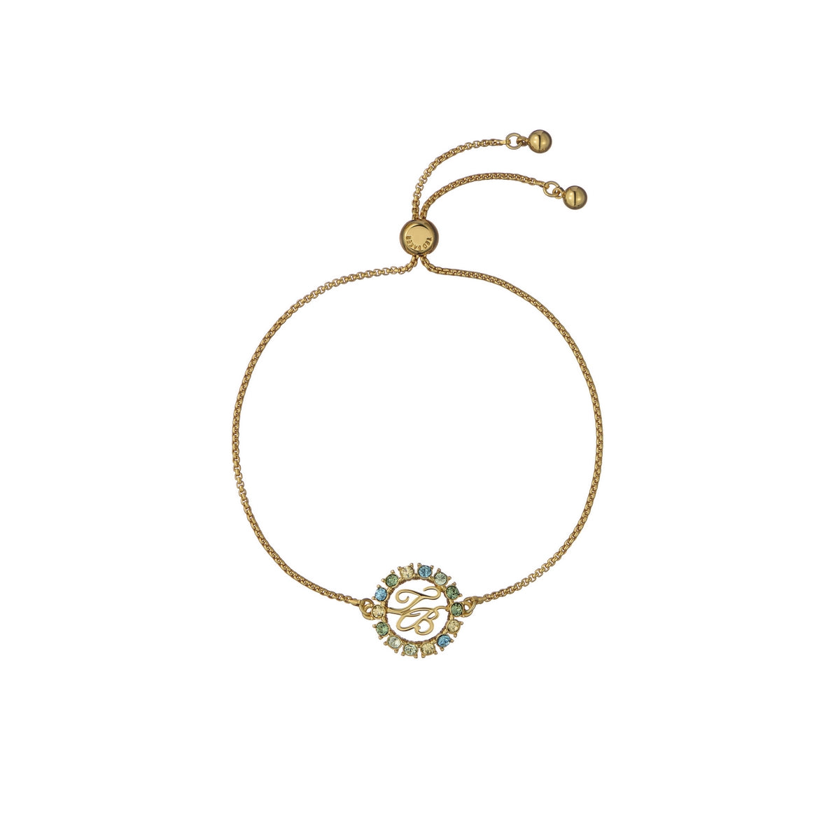 TED BAKER MOLINA: Monogram Crystal Adjustable Bracelet Gold Tone
