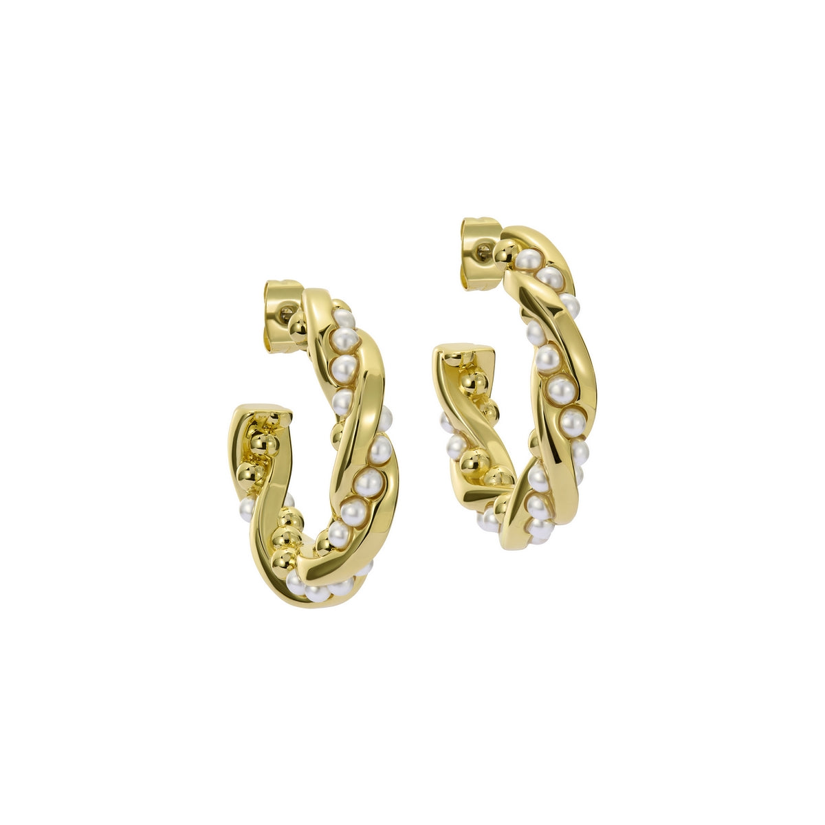 TED BAKER TIYAA: Twisted Pearl Hoop Earrings Gold Tone