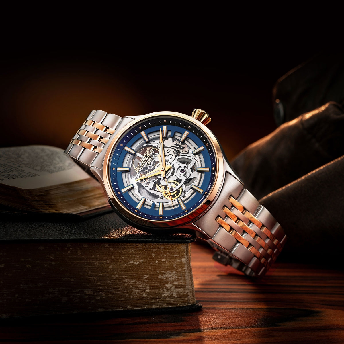 Roamer Competence Skeleton III Swiss Made Automatic STP6-15 3 Hands SS IPRosegold Two Tone Mechanical Wrist-Watch - Analog - self winding