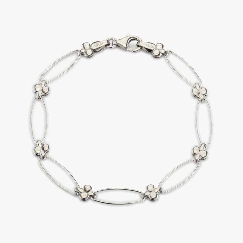thin oval outline bracelet with linked flowers between