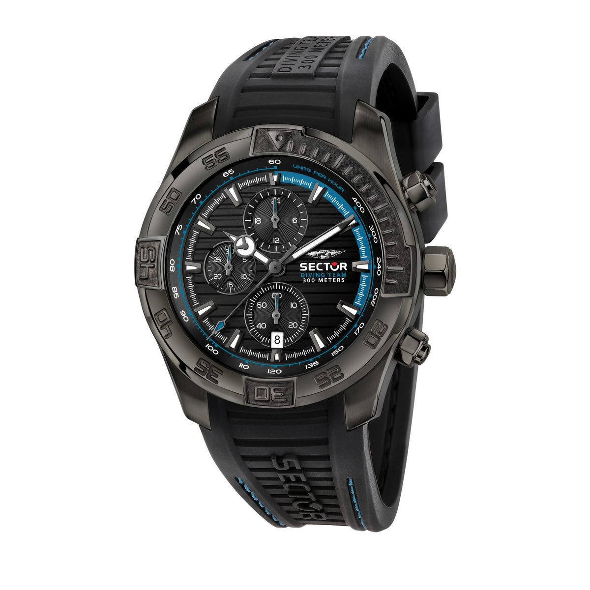 sector diving team 45mm chronograph blk dial blk strap watch