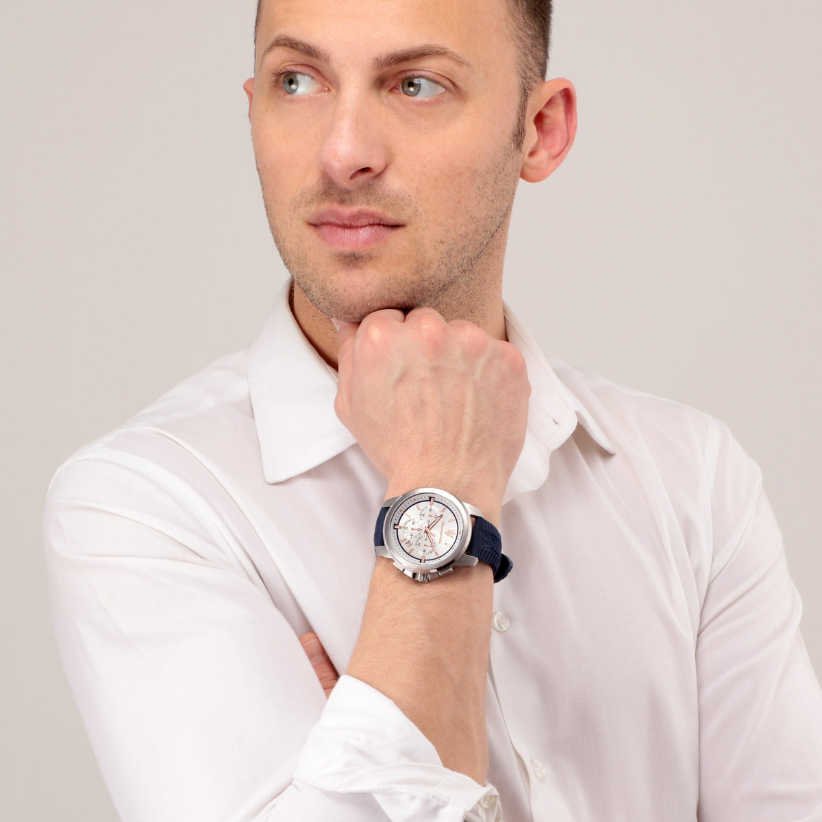 MASERATI SUCCESSO 44MM CHR W/SILVER DIAL BLUE ST