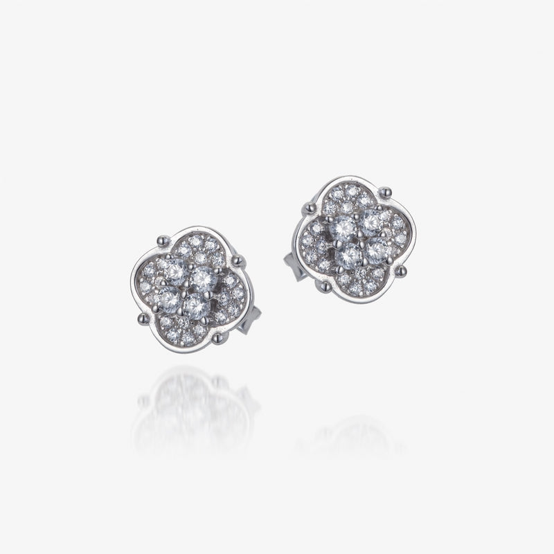 Real Effect Casual flower stud earrings hand crafted with fine 925 sterling silver and glistening cubic zirconia stones.