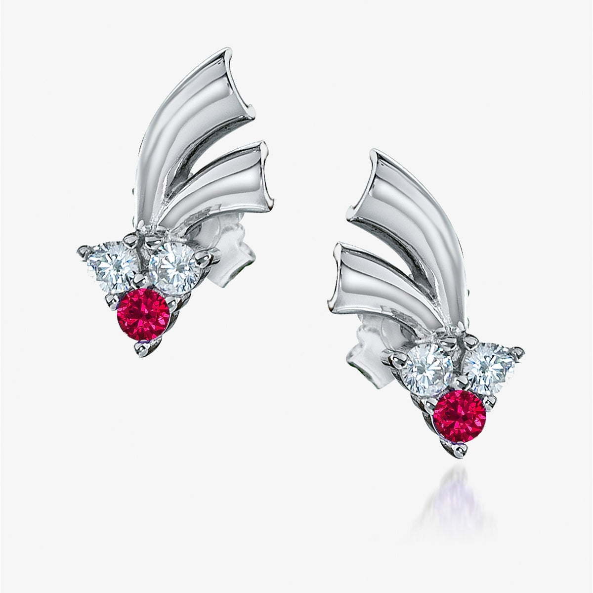 stud with a plain silver triangle and 3 red stones attached to that