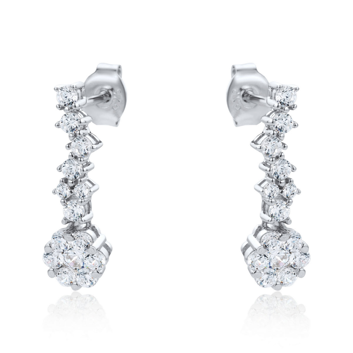 fully stone set drop earrings with cubic zirconia in sterling silver