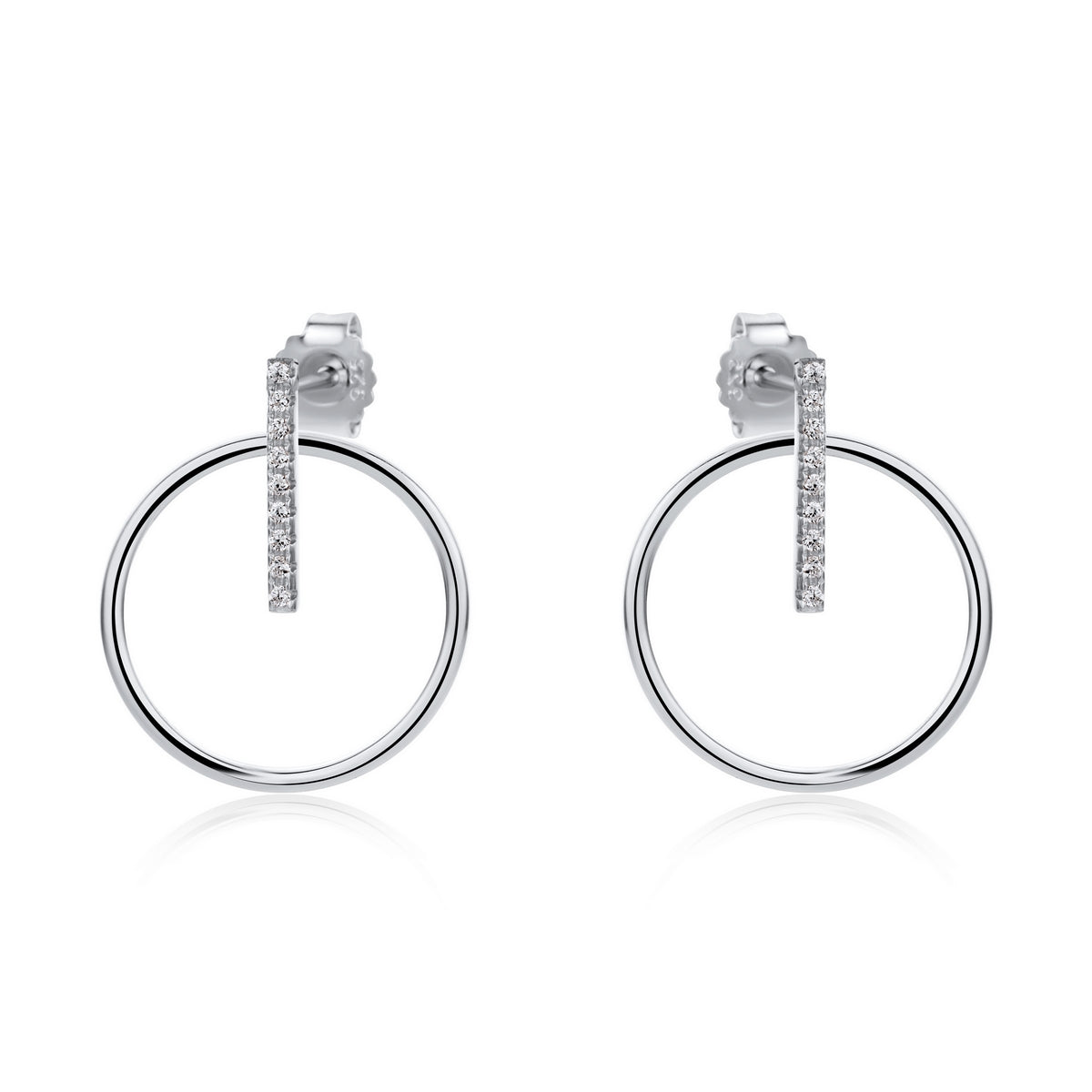 Circle Earrings with Fully Stoneset Intersecting Line of Cubic Zirconia in Sterling Silver