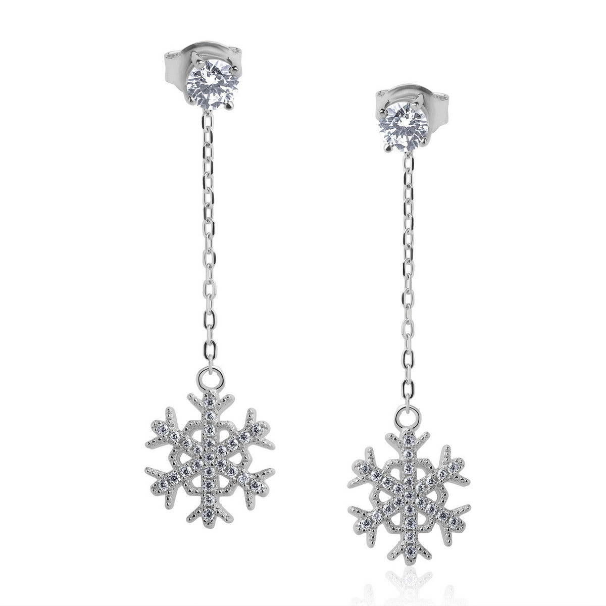 REAL EFFECT FULLY STONSET SNOWFLAKE ON LONG CHAIN STUD EARRINGS