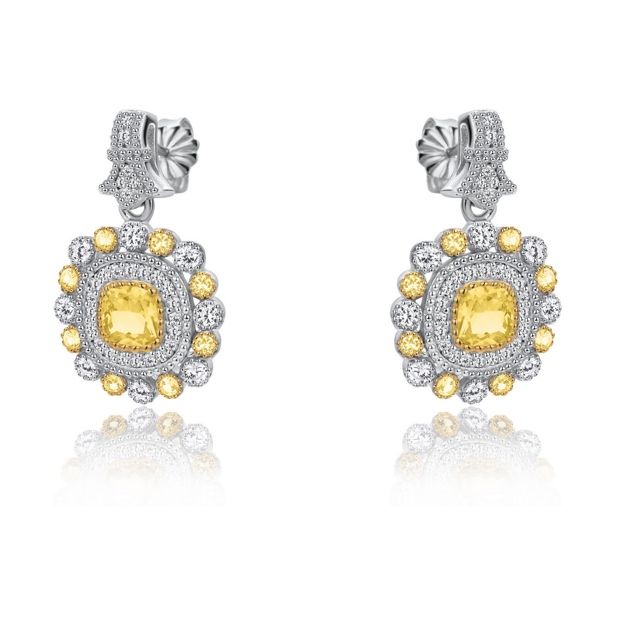 Amber and Cubic Zirconia Circle Drop Earrings in Sterling Silver