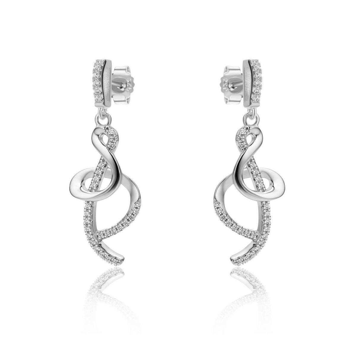 real effect partially stoneset cubic zirconia teardrop outline drop earrings in sterling silver