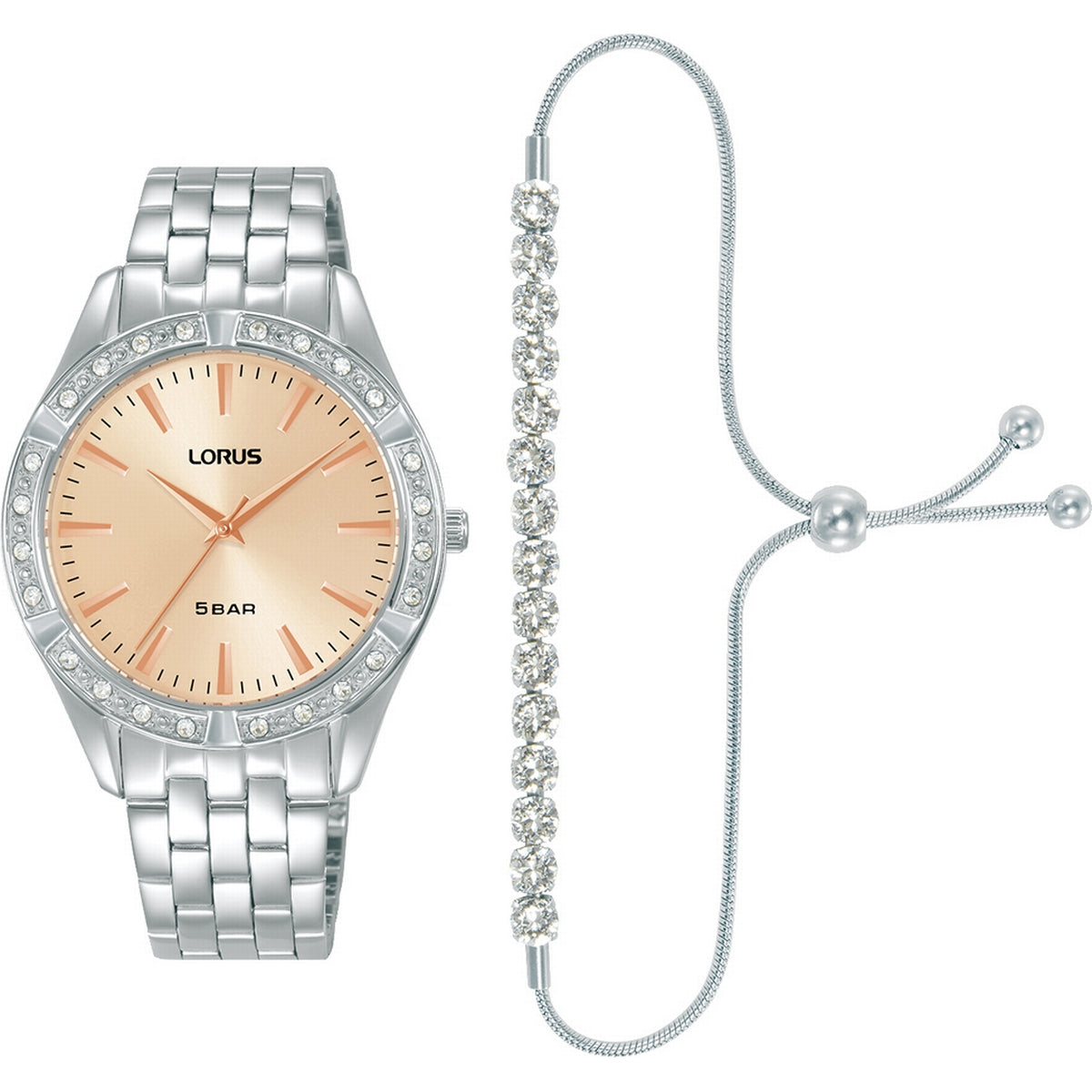 lorus ladies gift set stainless steel pink dial watch & silder bracelet