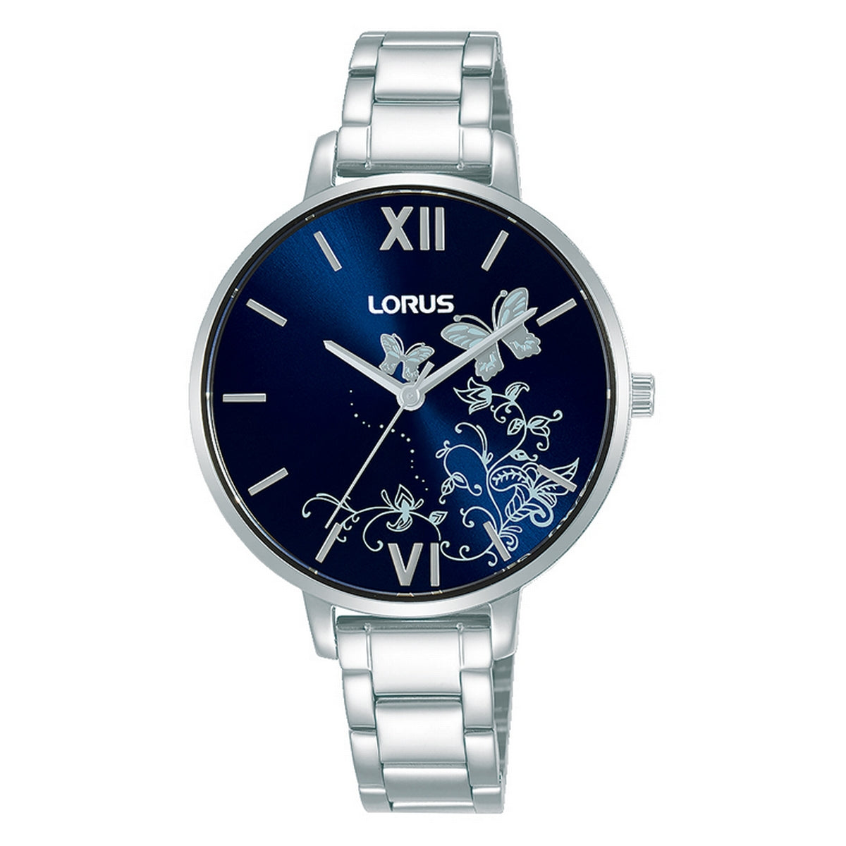 lorus quartz ladies stainless steel blue sunray patterened dial strap watch