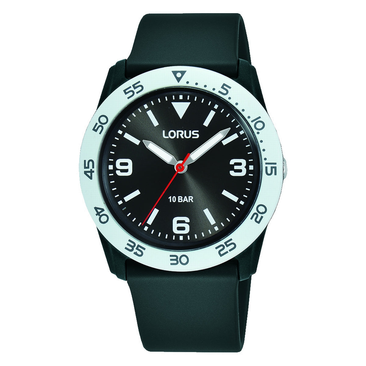LORUS QUARTZ KIDS BLACK DIAL BLACK SILICONE STRAP