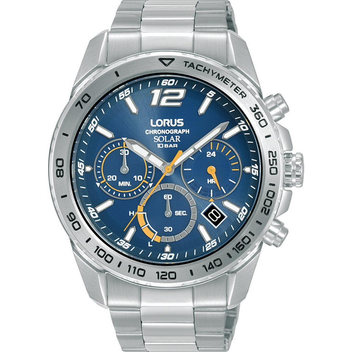 lorus solar chronograph gents stainless steel blue dial bracelet watch