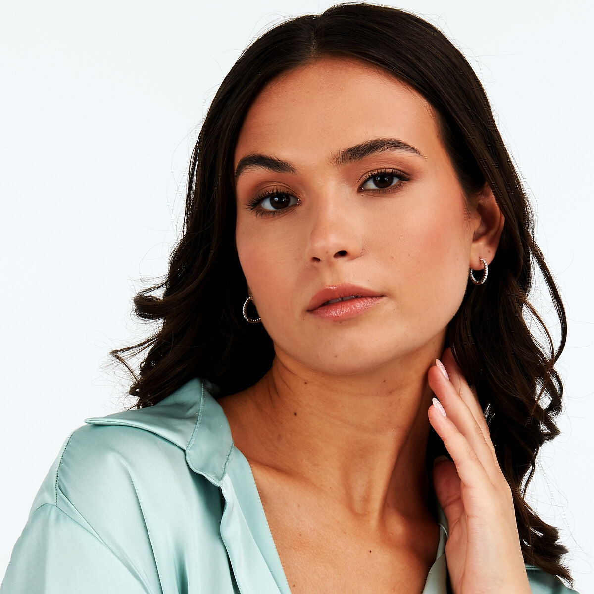 TESORI HOOP EARRINGS 925 SILVER WHITE CZ SMALL