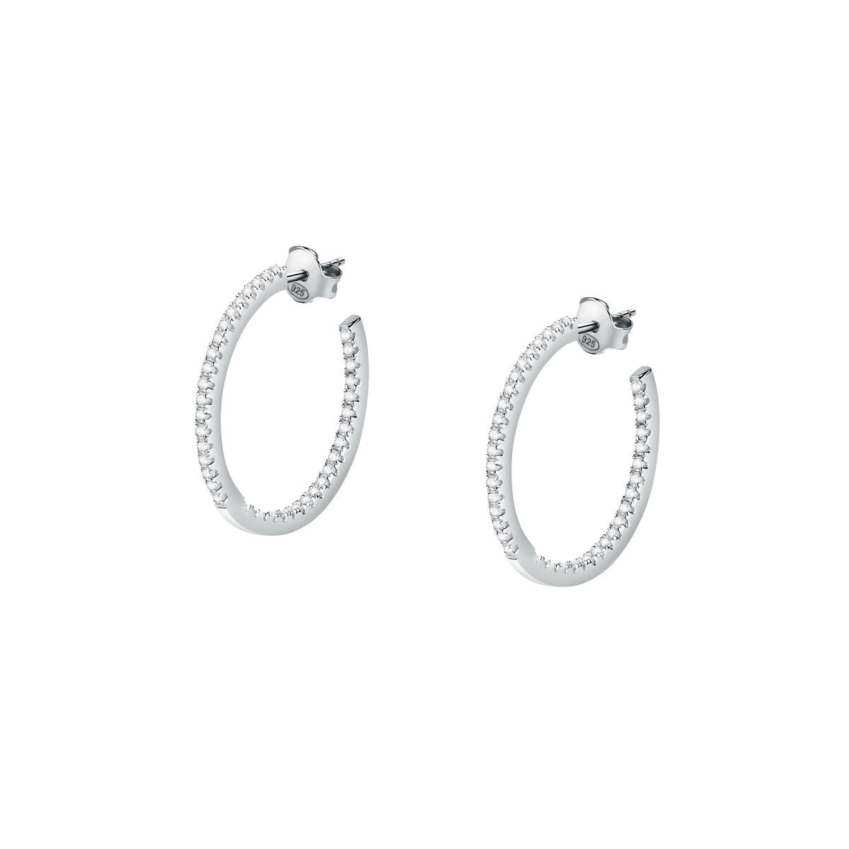 TESORI HOOP EARRINGS 925 SILVER WHITE CZ MEDIUM