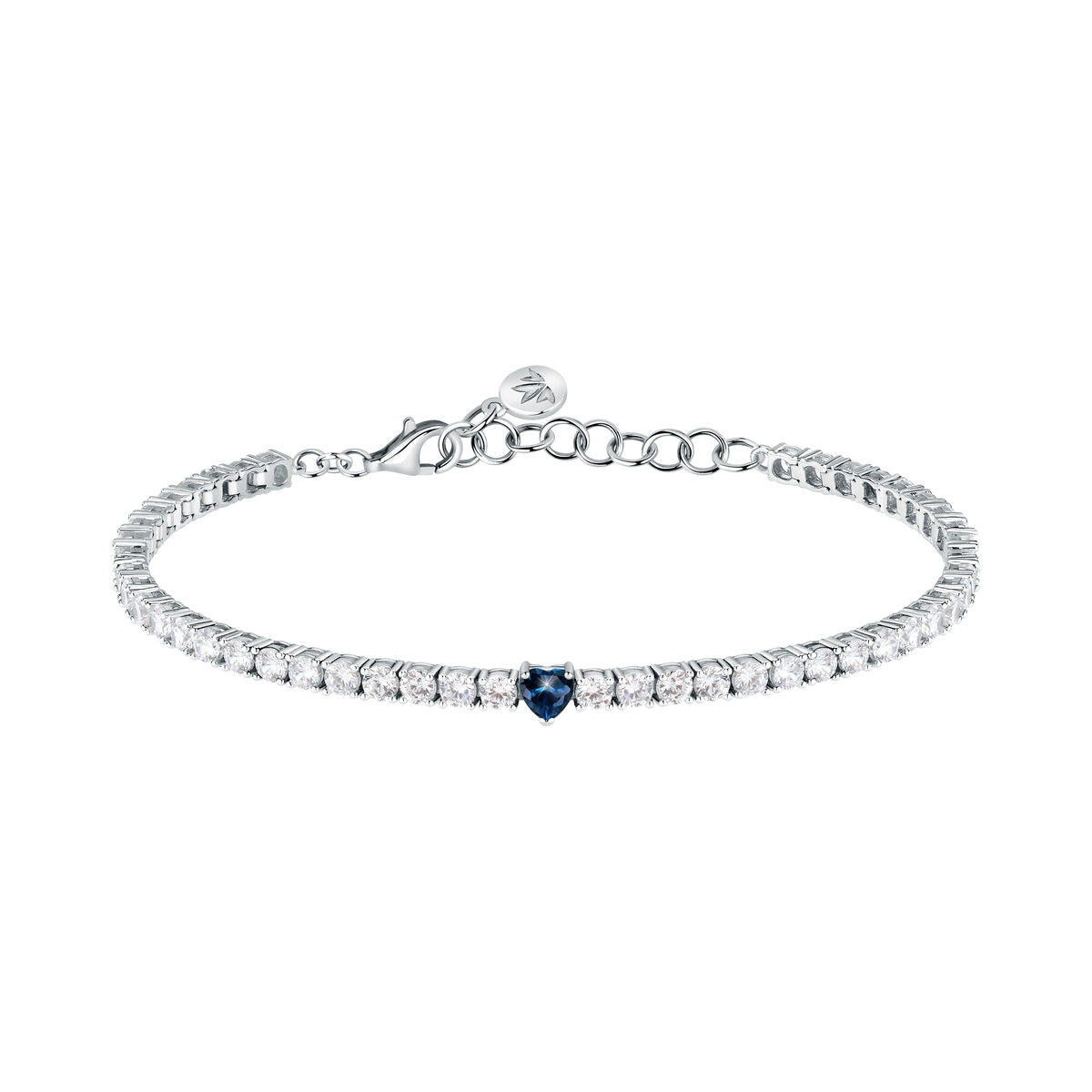 tesori bracelet 925 silver white cz with sapphire heart centre cz 19cm