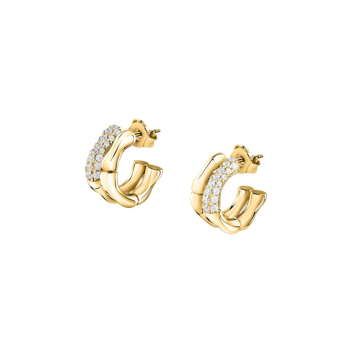 ESSENZA HUGGIE EARRINGS 925 SILVER BAMBOO FEATURE WITH CZ 18K GOLD PLATING