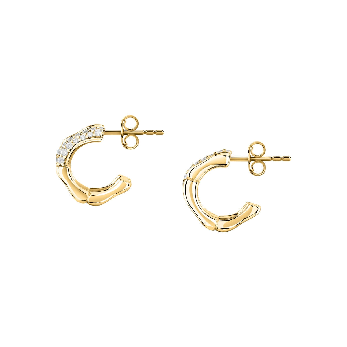 essenza huggie earrings 925 silver bamboo feature with cz 18k gold plating