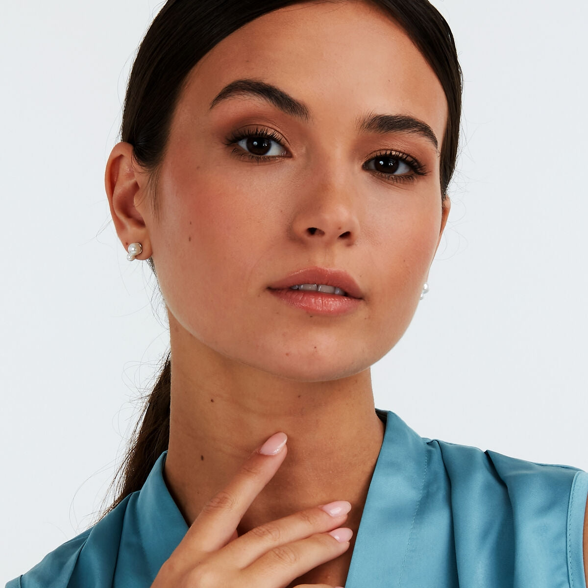 PERLA STUD EARRINGS 925 SILVER PEARL WITH DROP PEARL