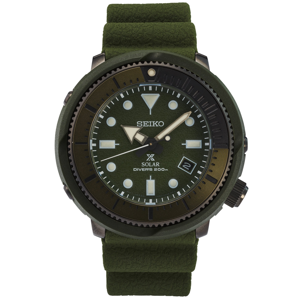 seiko prospex street series solar green stainless steel and plastic divers green dial rubber strap watch