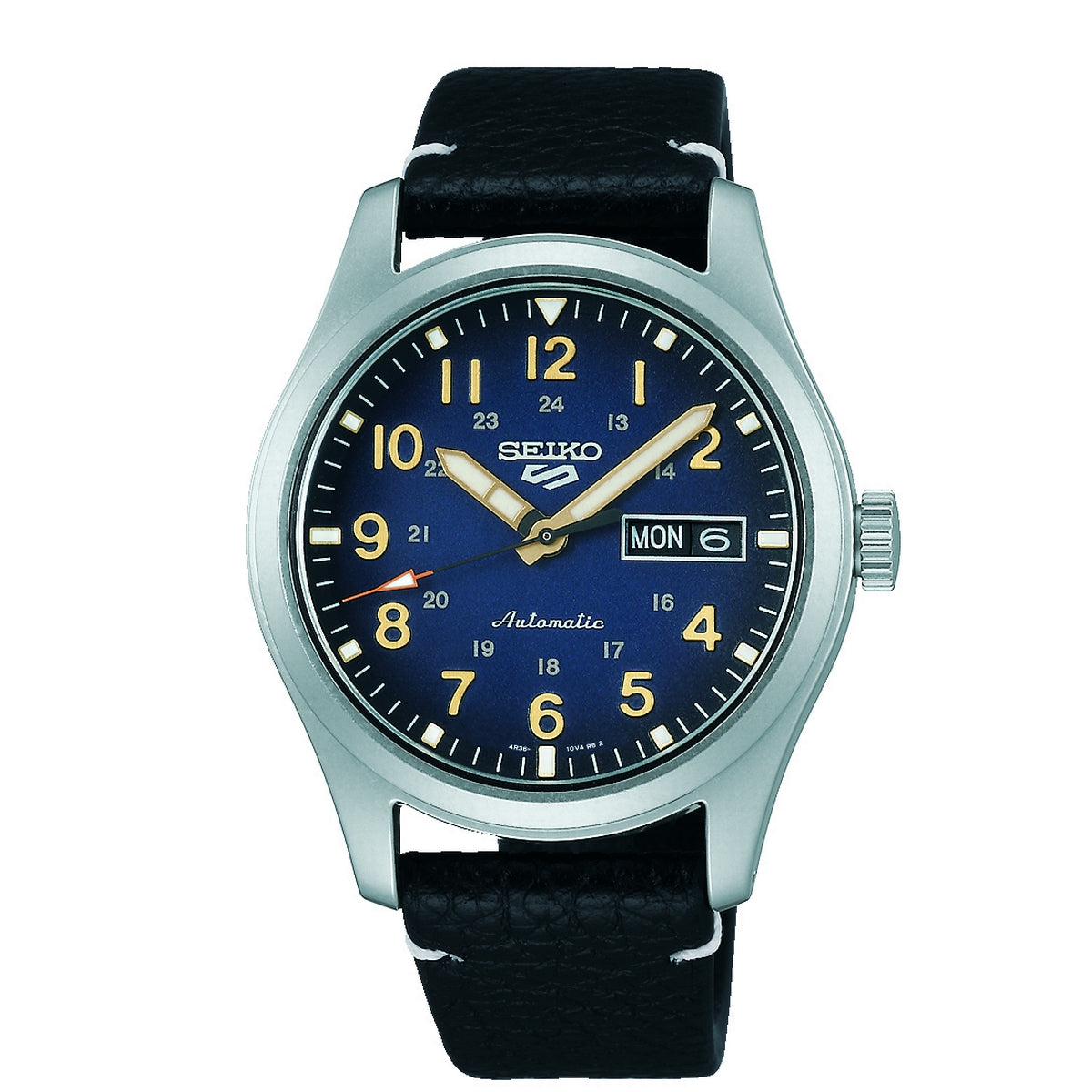 seiko seiko 5 sports field watch automatic navy dial, 39.4mm, 10bar, calf strap watch