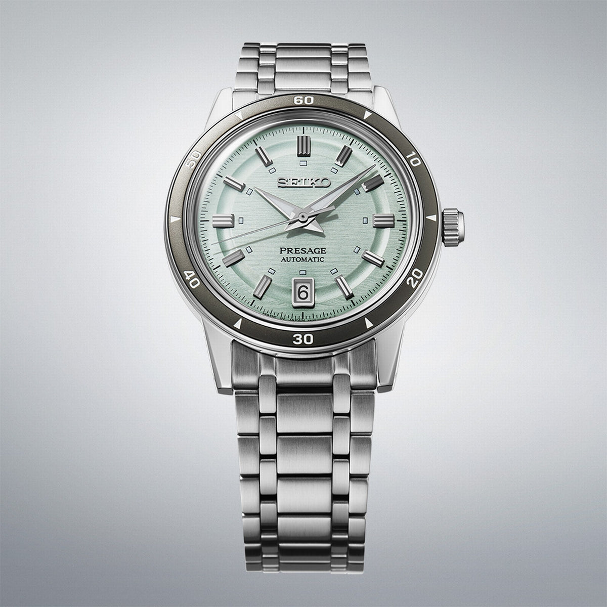 seiko presage style 60s in ice green bracelet watch