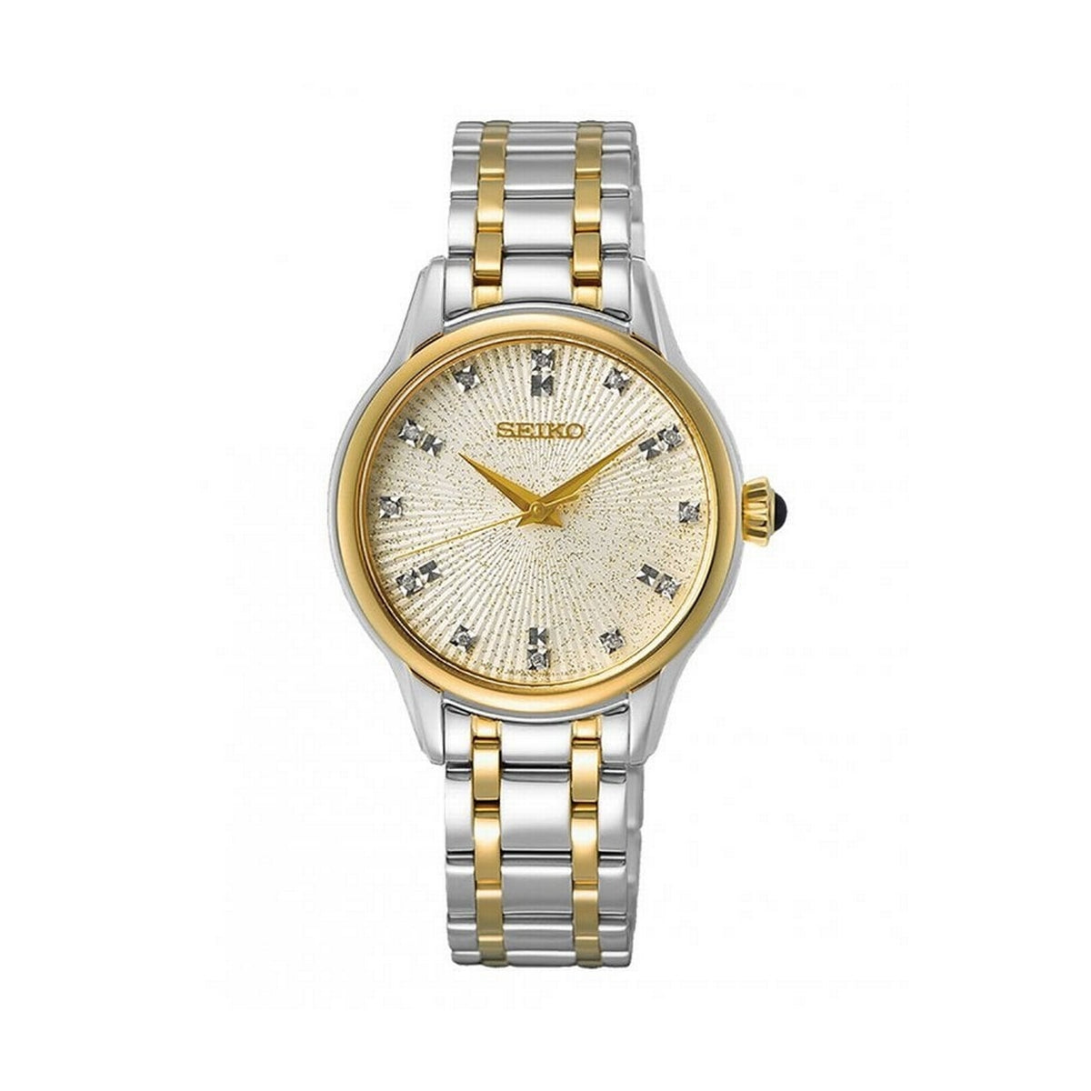 seiko quartz ladies two tone cream dial bracelet watch