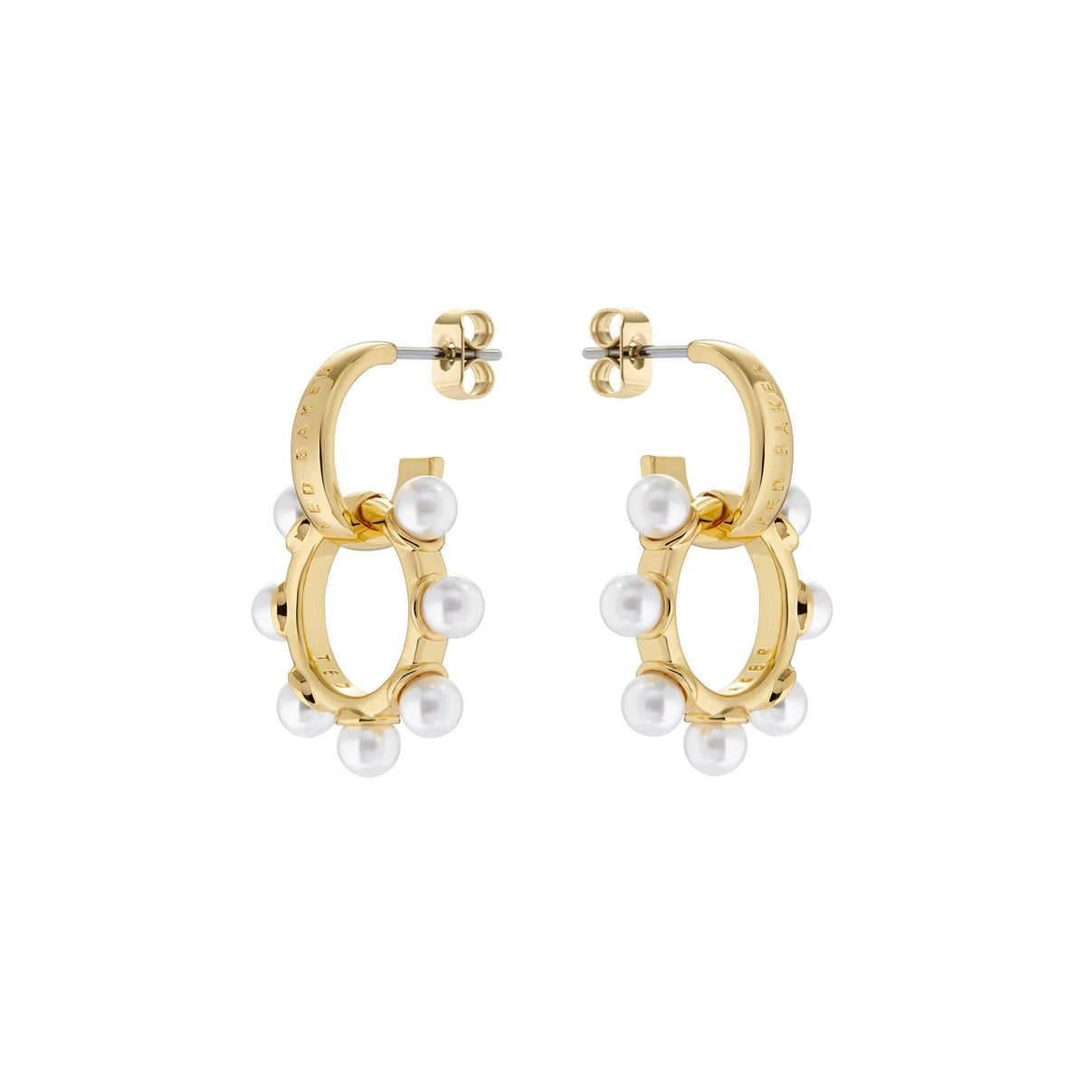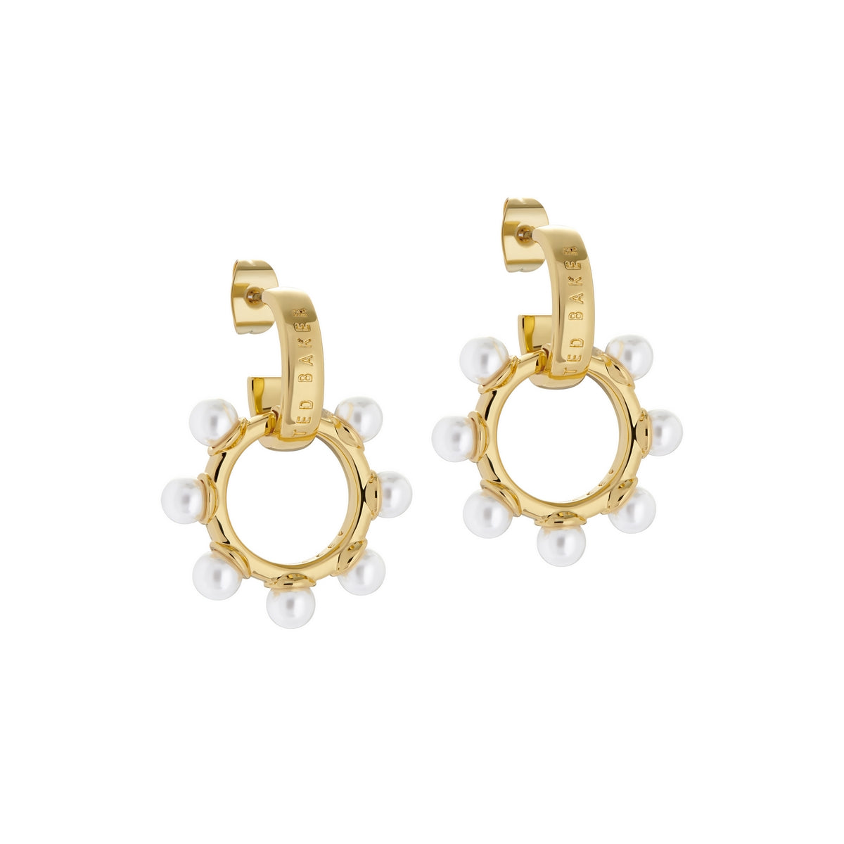 TED BAKER PETUNAA: Pearl Bubble Hoop Charm Gold Tone Earring