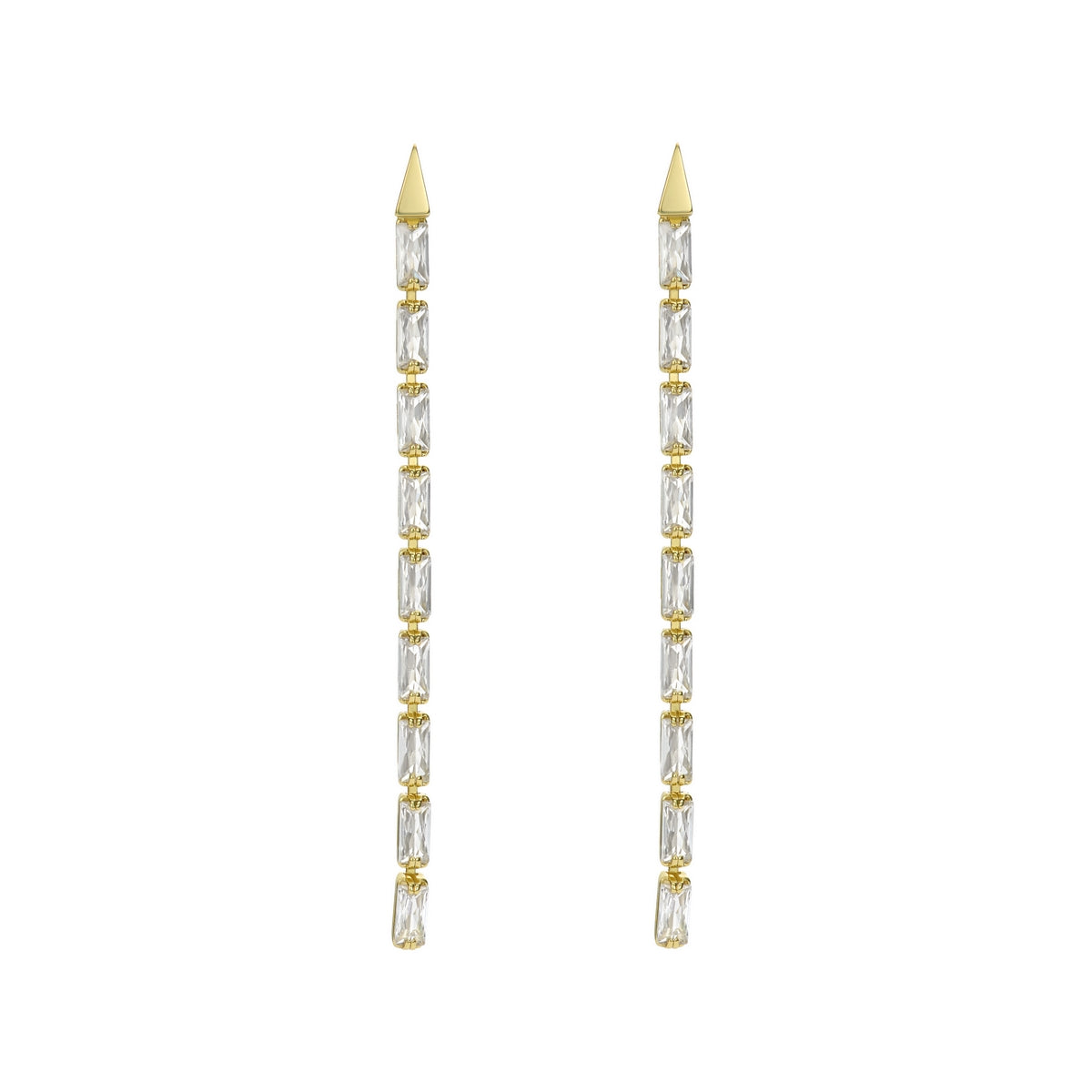 ted baker isalie: crystal baguette slinky drop earrings gold tone, clear crystal