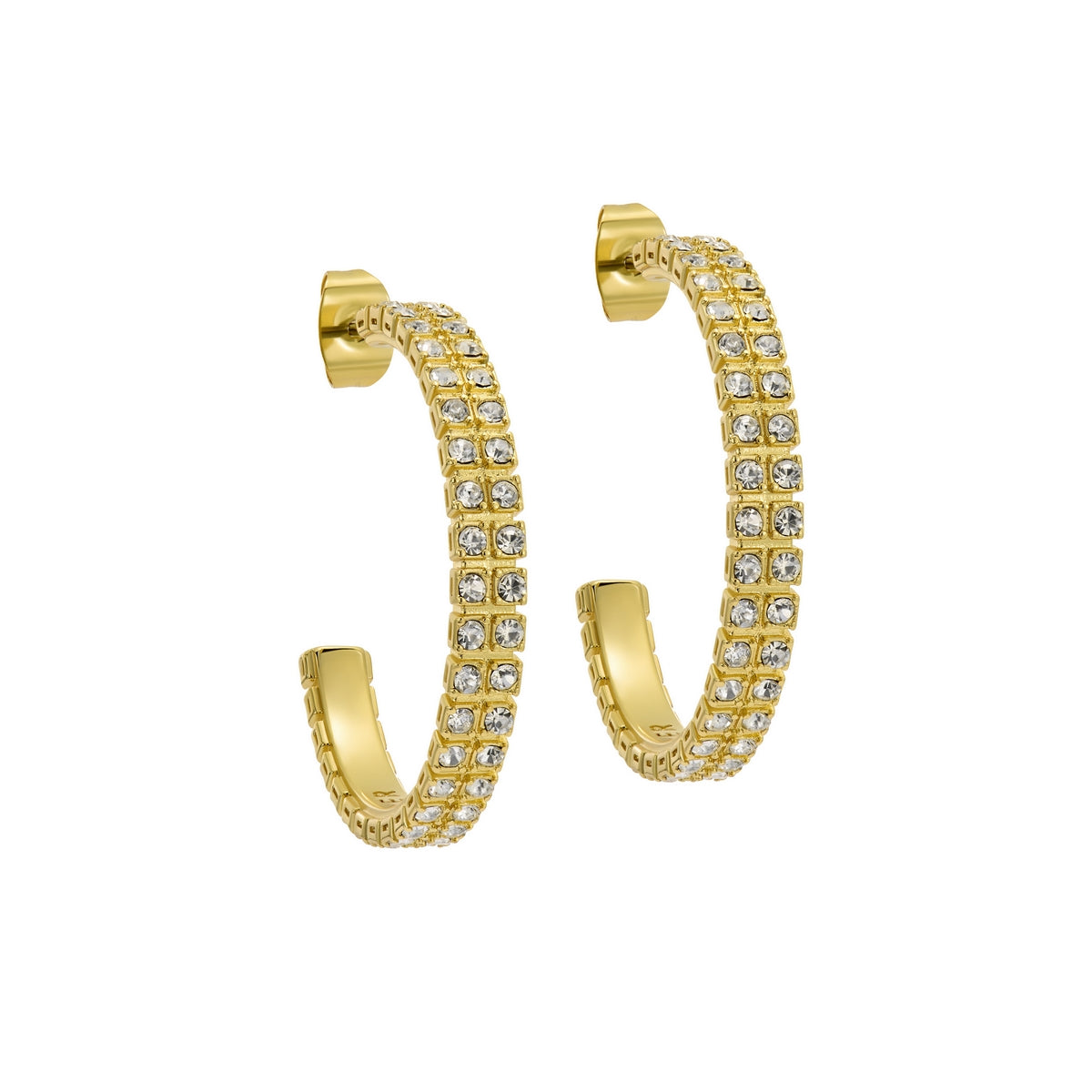 ted baker mellia: medium double crystal hoop earrings gold tone, clear crystal