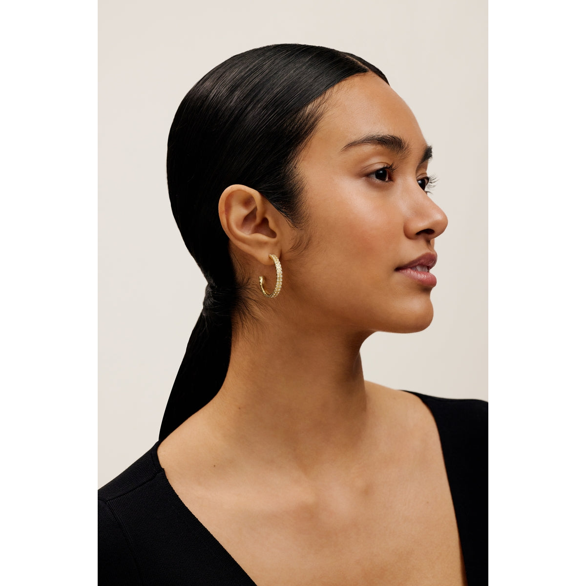 TED BAKER MELLIA: Medium Double Crystal Hoop Earrings Gold Tone, Clear Crystal