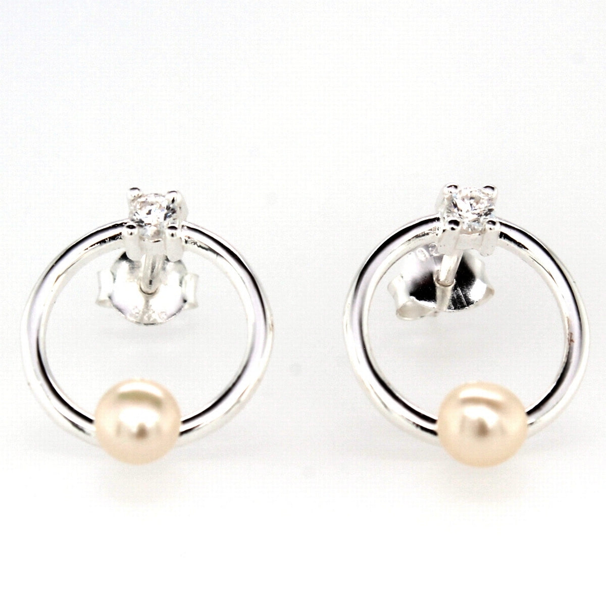 silver pearl and cz open plain circle stud earrings �