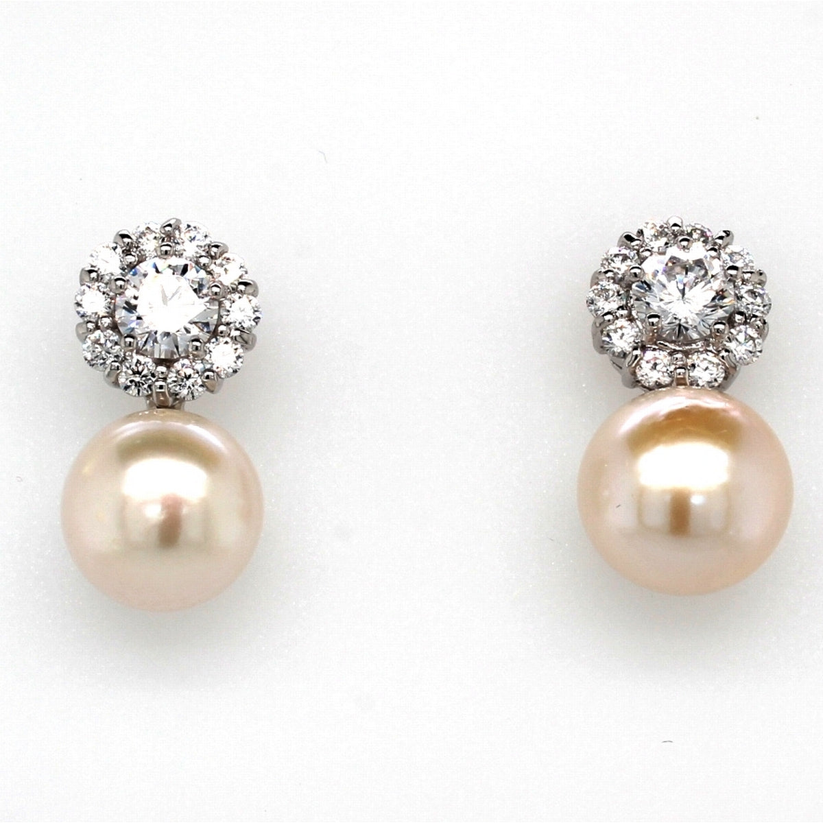 silver pearl and eleven stone cz cluster stud earrings 95mm