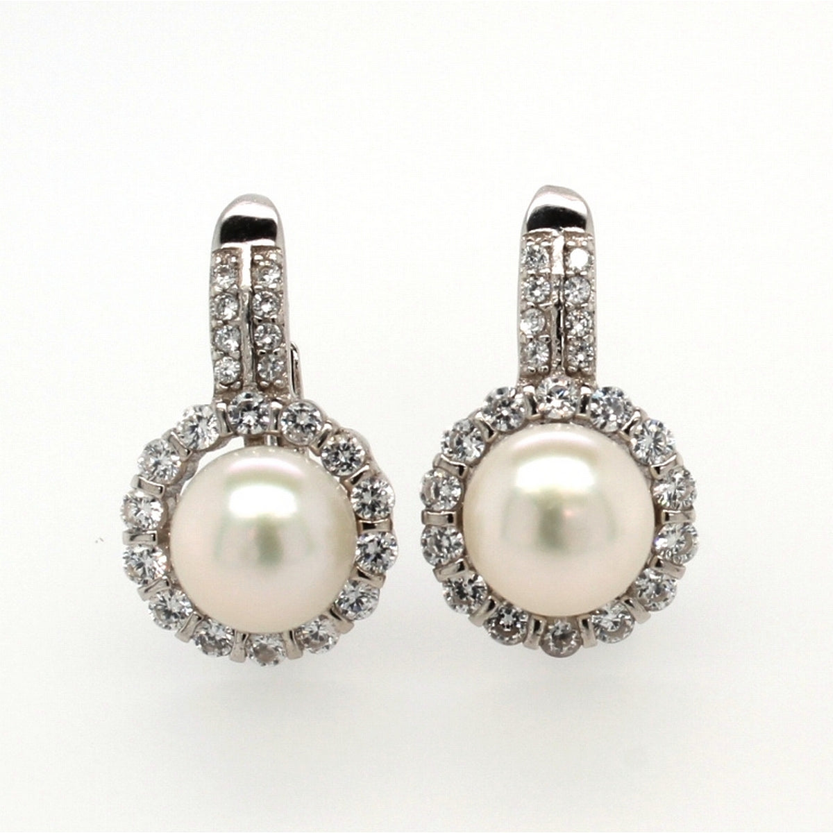 Silver Freshwater And CZ Lever Back Earrings 7mm